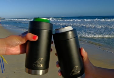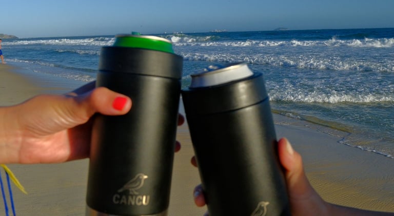 El can cooler de Cancu es perfecto para mantener mis bebidas frías en la playa. Su diseño minimalista y el logo del pájaro hornero son simplemente hermosos.